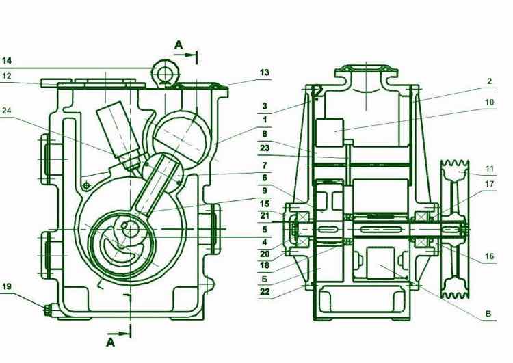 На вал также одеты эксцентрики. Уплотнение по валу обеспечивается с помощью манжет.